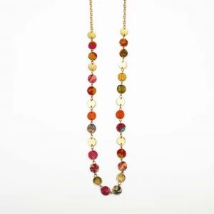 Handcrafted Aasha Necklace – Colorful necklace made with wooden beads wrapped with recycled sari fabrics. 24″ Long.