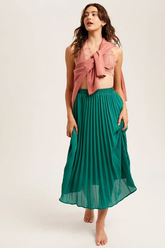 Be the first to review “Listicle Bottoms The Kimble Pleated Maxi Skirt In Green” Cancel reply
