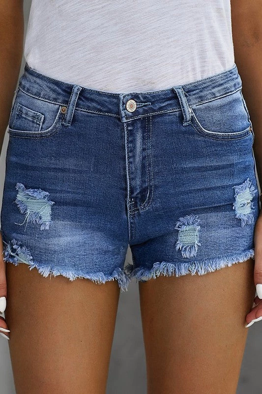Our Distressed Ripped Denim Shorts with Pockets are ideal for Spring and Summer. Features a stretchy high rise fit and a frayed hemline. Finished with a front fly zipper and button closure and a classic five-pocket style