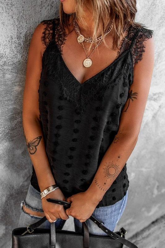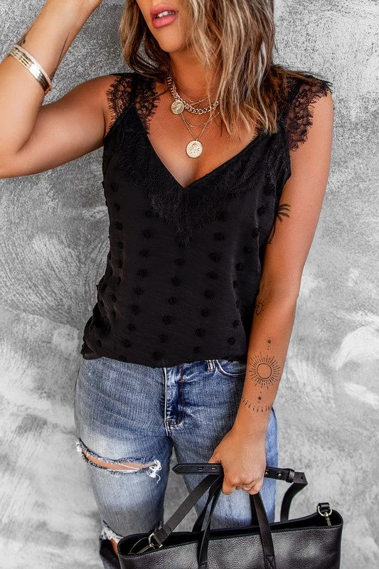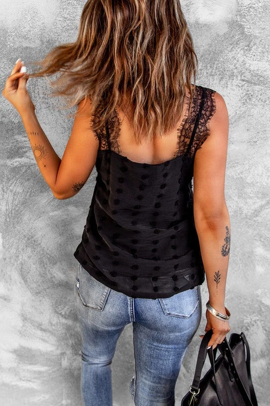 Features a soft and breathable material, Swiss dot, and see-through lace shoulder strap. This sexy little number will be a staple in your closet.