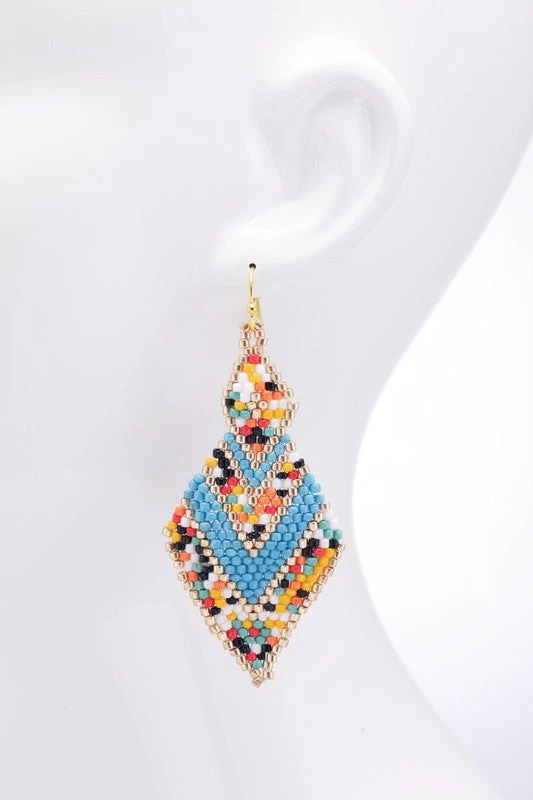 Double rhombus colorful seed bead dangle fish hook earrings *Seed Bead, Metal *Nickel/Lead Compliant *APPROX. L 2.5″ W 1.25″