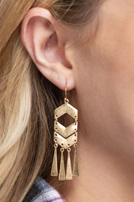 Trendy 3 layered chevron with a metal dangle tassel dangle drop earrings