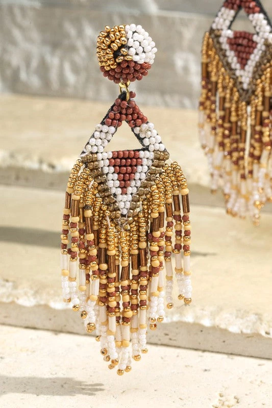 Glamorous western inspired intricate seed bead fringe dangle drop earrings *Seed Bead *Nickel/Lead Compliant *APPROX. L 4″ W 1.5″