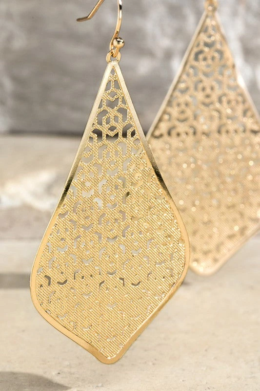 Brass filigree unique design with tear drop metal dangle drop fish hook earrings *Brass *Nickel/Lead Compliant *APPROX. L 2.25″ W 1.25″
